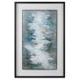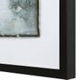 Hand Painted On A Metal Sheet, This Contemporary Artwork Features Shades Of Silver Leaf, Blue-green And White. Each Piece Is Placed Under Glass In A Black Shadow Box Style Frame Against A White Background. Due To The Handcrafted Nature Of This Artwork, Each Piece May Have Subtle Differences.