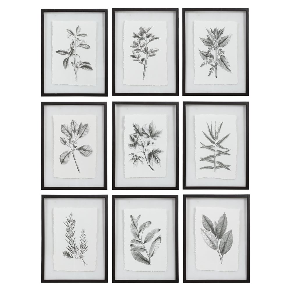 A More Modern Take On Classic Botanical Prints, This Set Of Artwork Showcases A Classic Black And White Theme With Deckled Edges. Each Print Is Placed Under Glass And Accented By A Petite Matte Black Finished Frame.