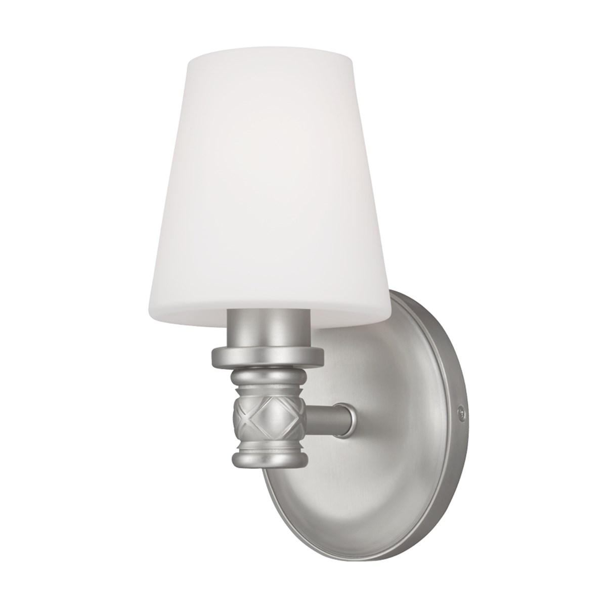 A subtle "X" design detail on the base of each light brings a tailored, masculine style to the transitional Xavierre bath lighting collection by Feiss in an understated and refined way. The nicely tapered, Opal Etched glass shades with closed bottoms hide the lamping, and the cleverly hidden hardware also contributes to the clean, classic aesthetic.