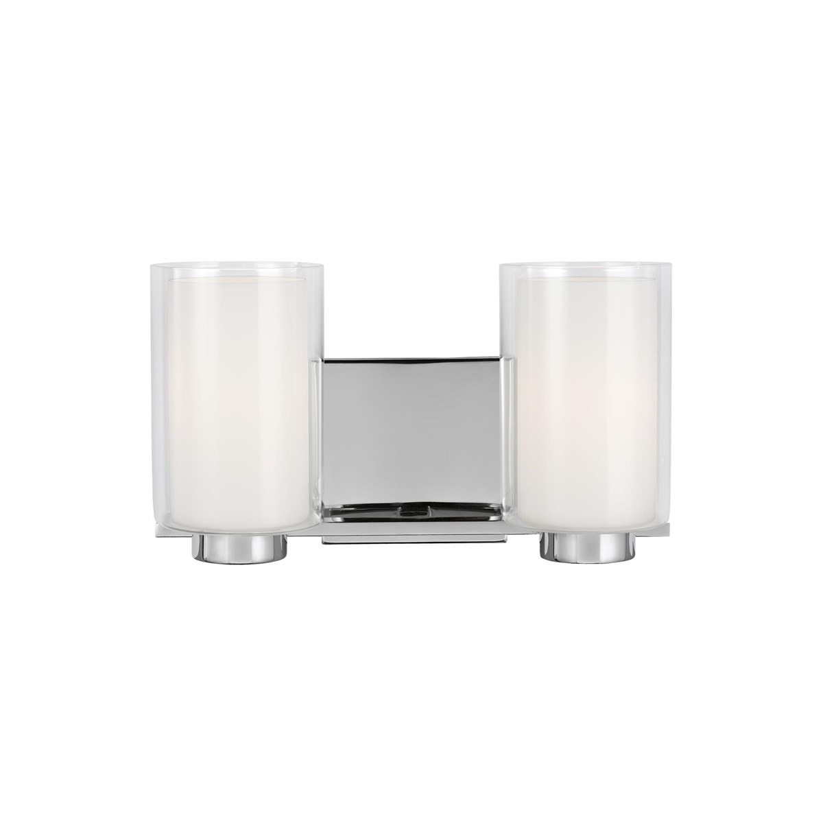 The Bergin bath lighting collection by Feiss features modern, cylindrical Clear glass shades which surround White, inner glass shades to create a rich and elegant layering effect delivering a soft glow. The off-set, square backplate provides a sleek design contrast, making this transitional collection appropriate for a wide range of décor. Available in either a Satin Nickel or Chrome finish, Bergin can be mounted up or down.