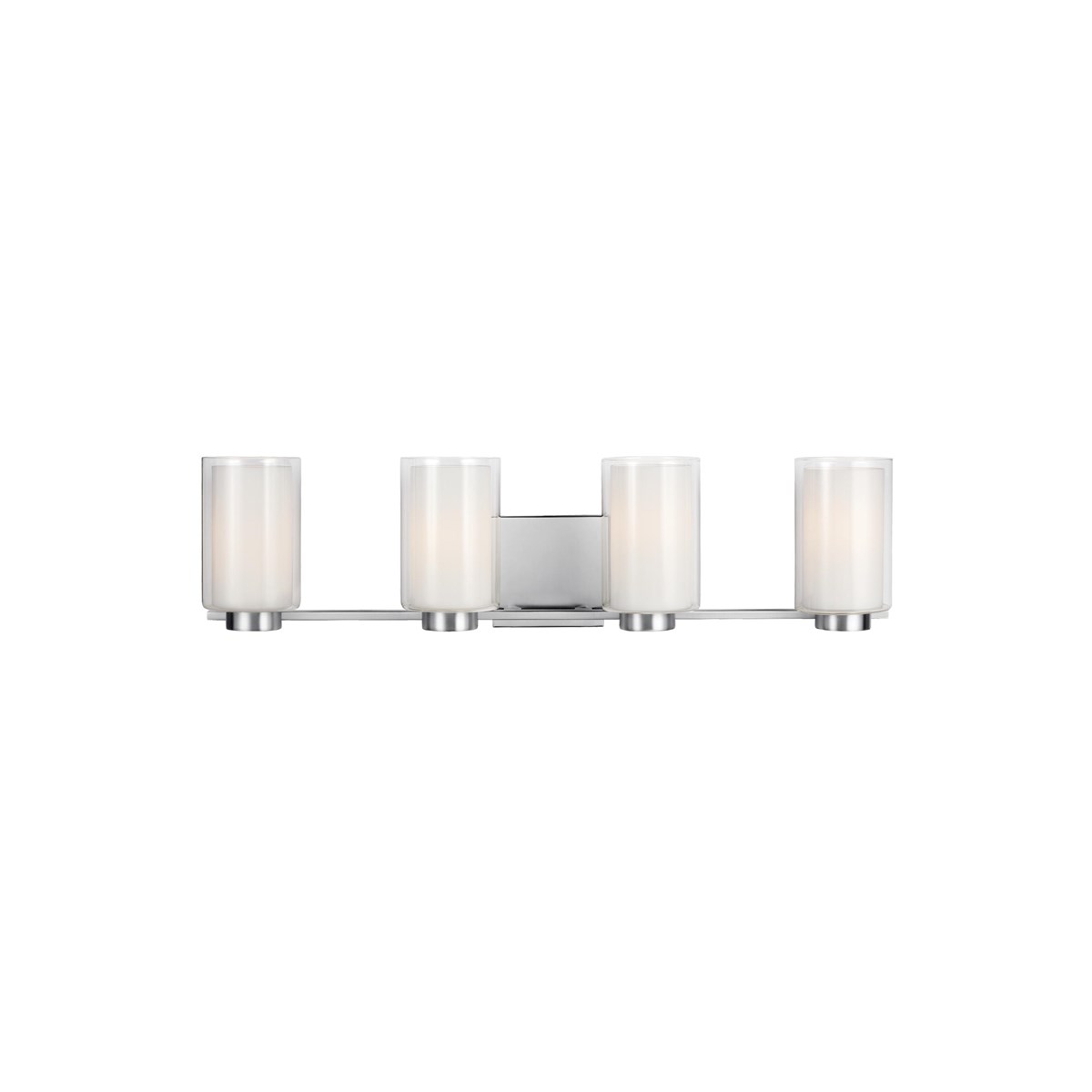 The Bergin bath lighting collection by Feiss features modern, cylindrical Clear glass shades which surround White, inner glass shades to create a rich and elegant layering effect delivering a soft glow. The off-set, square backplate provides a sleek design contrast, making this transitional collection appropriate for a wide range of décor. Available in either a Satin Nickel or Chrome finish, Bergin can be mounted up or down.