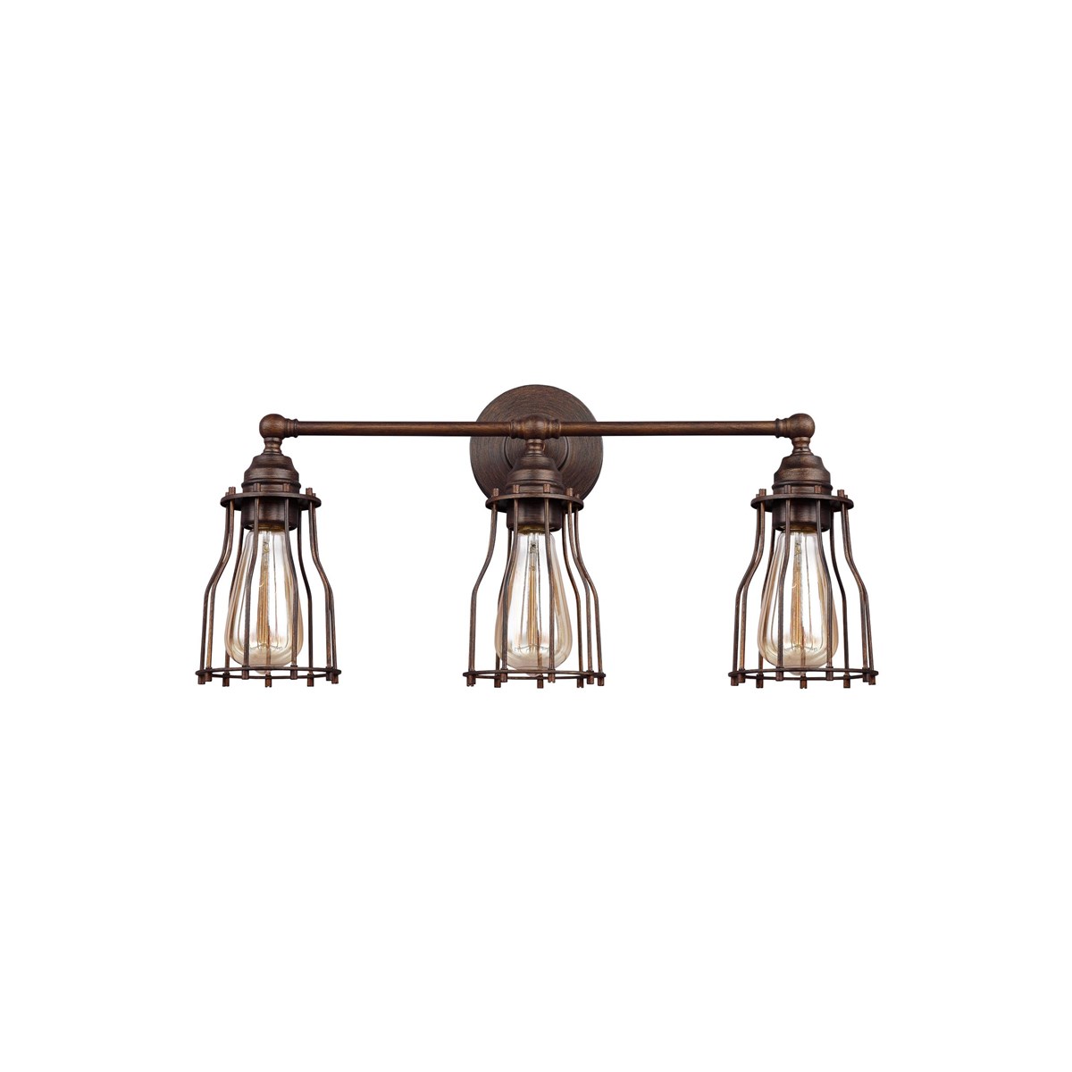 Inspired by fixtures found in turn-of-the-century industrial factories, the Calgary bathroom lighting collection from Feiss features wire frame shades, exposed lamping and a highly structured shape with circular backplate detail. The caged metal style gives a truly rustic feel, and using vintage-style Edison bulbs (sold separately) further enhances the industrial vibe. Calgary fits bathrooms both large and small with 1-light wall sconce, 2-light vanity, 3-light vanity and 5-light vanity options.