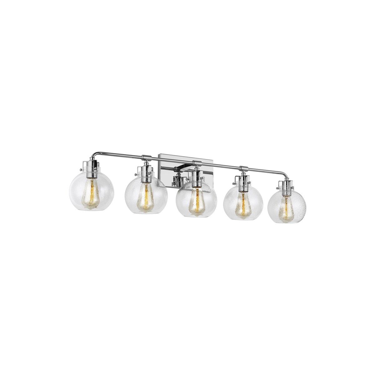 Clara features Clear Seeded glass shades that subtly diffuse the lamping while allowing the exposed bulb to be a central design element of the fixture. Choose the look that's right for your space with four finish options: Chrome, Satin Nickel, Oil Rubbed Bronze or a two-toned finish of Textured Black with Chrome.