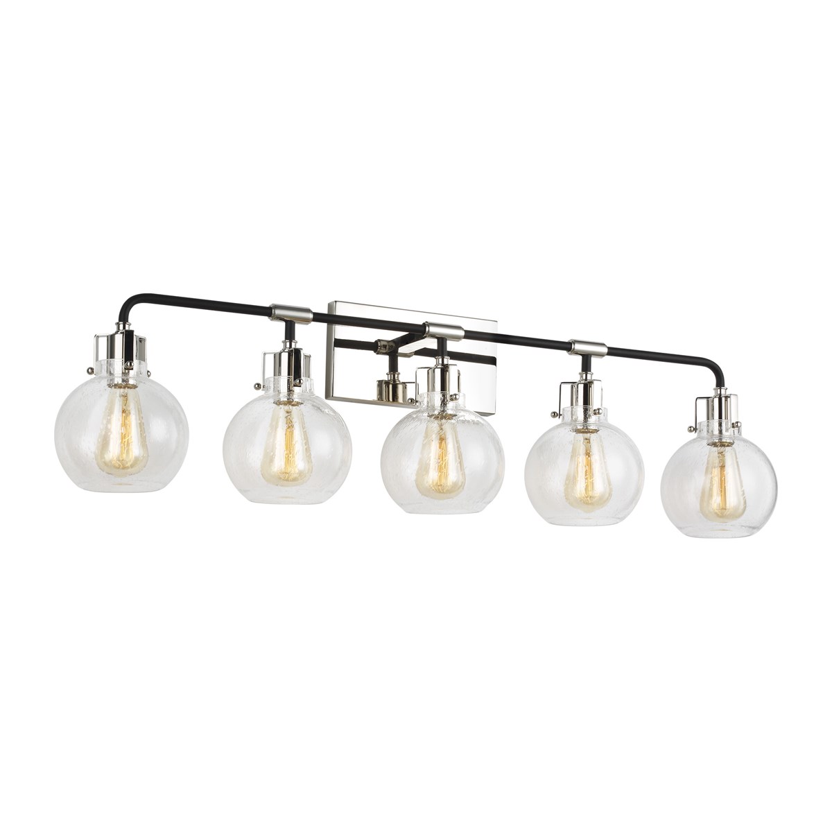 Clara features Clear Seeded glass shades that subtly diffuse the lamping while allowing the exposed bulb to be a central design element of the fixture. Choose the look that's right for your space with four finish options: Chrome, Satin Nickel, Oil Rubbed Bronze or a two-toned finish of Textured Black with Chrome.