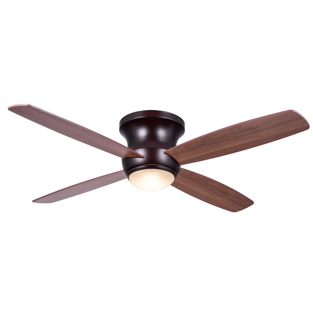 Ceiling Fan in the Oiled Bronze Finish, reversible maple/dark walnut blades with integrated 17W LED array and Opal glass