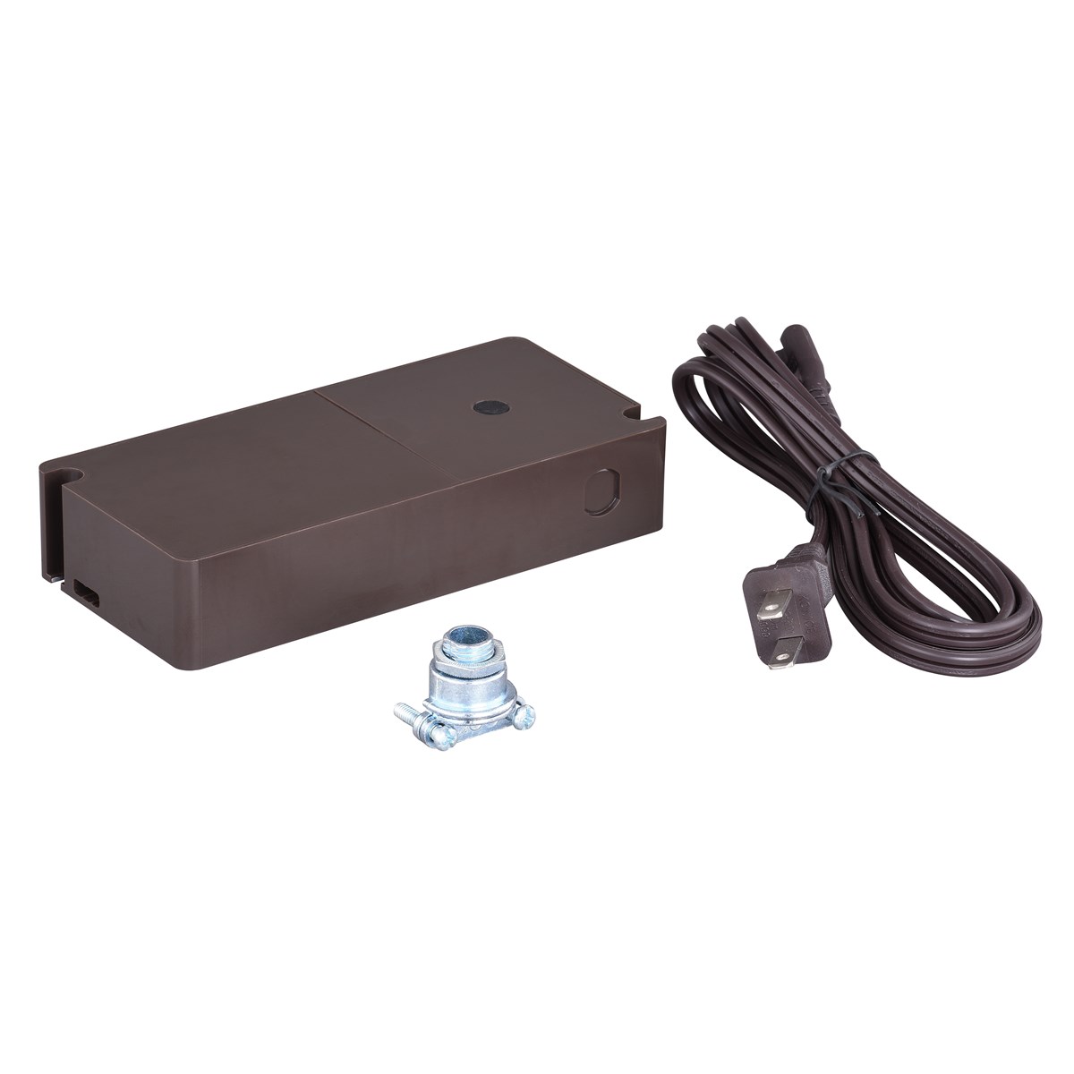 Instalux® 48W under cabinet power supply box for hard-wire connection. Available in white or bronze finish. Includes optional connection for plug-in installation.