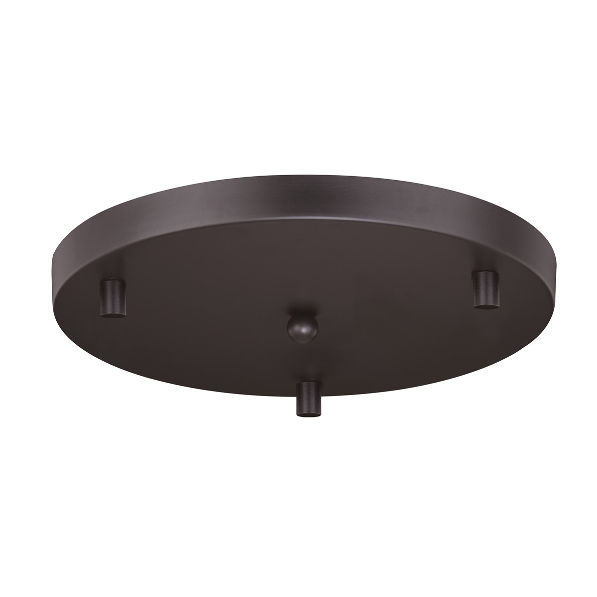 Round canopy adapter fits 3 pendant lights. Use to expand a single ceiling outlet box to create your own array of mini pendants above a kitchen island, dining table or bar area. Available in two classic finishes: satin nickel and oil rubbed bronze in 12" and 16" sizes. Compatible with downrod, chain, or cord connections.