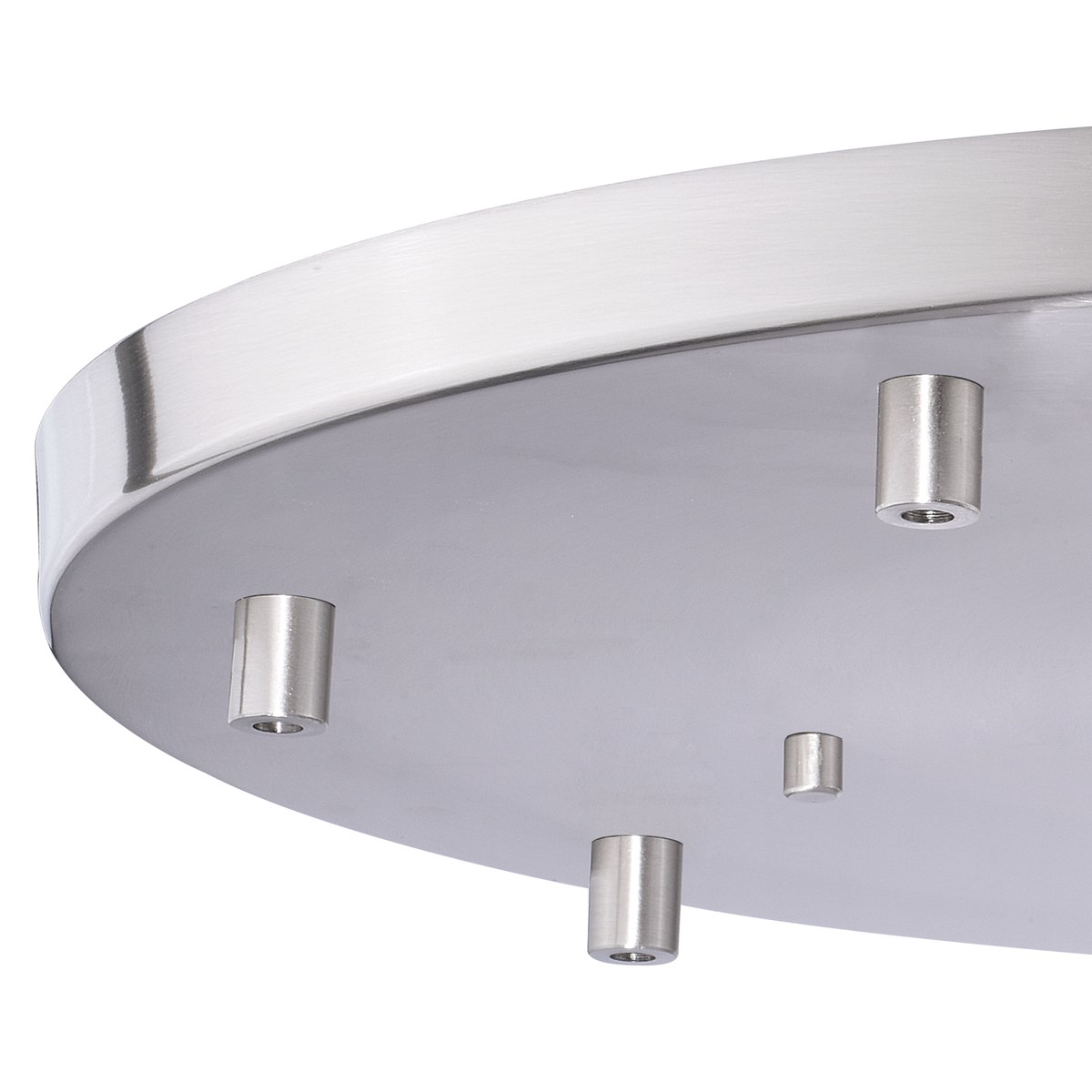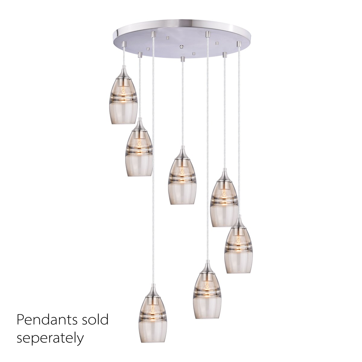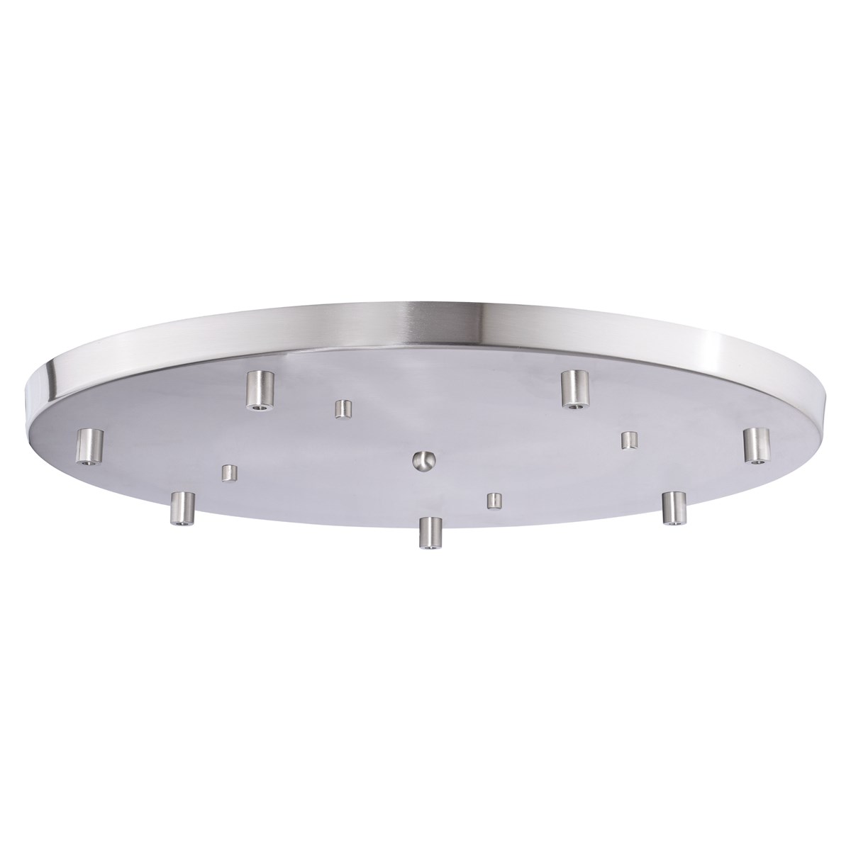 Round canopy adapter fits 7 pendant lights. Use to expand a single ceiling outlet box to create your own array of mini pendants above a foyer, island, or dining table. Available in two classic finishes: satin nickel and oil rubbed bronze. Compatible with downrod, chain, or cord connections.